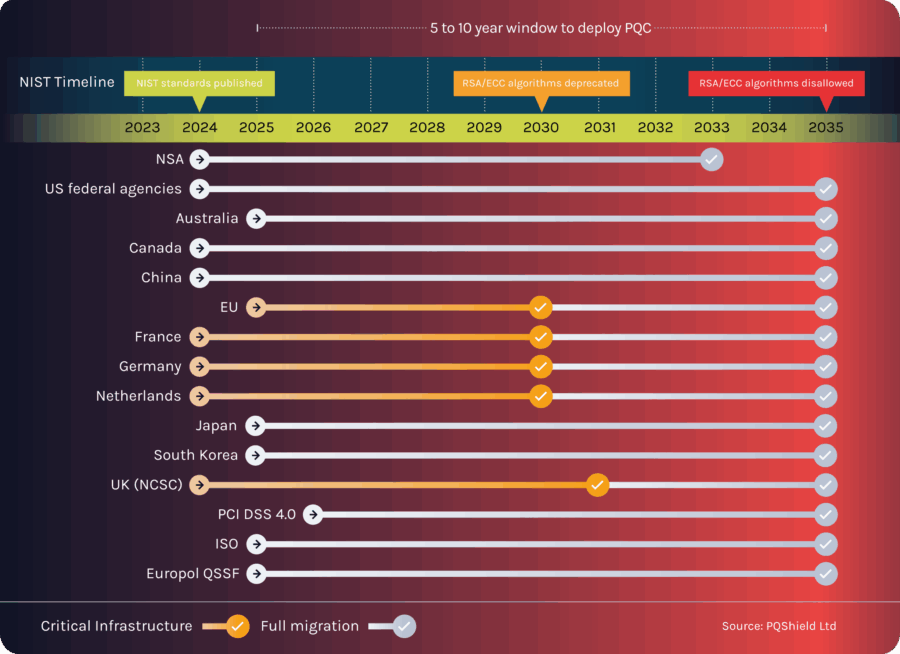 - End of 2035: Completion of PQC migration of remaining systems