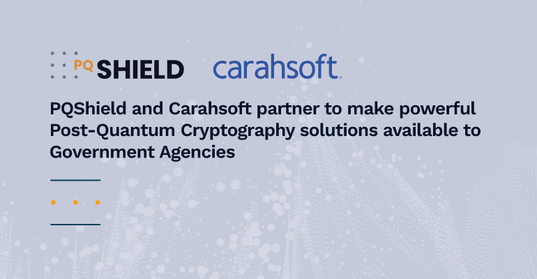We are thrilled to announce a strategic partnership with Carahsoft Technology Corp., making PQShield’s quantum-safe cryptography product suite readily available to the U.S. Public Sector.