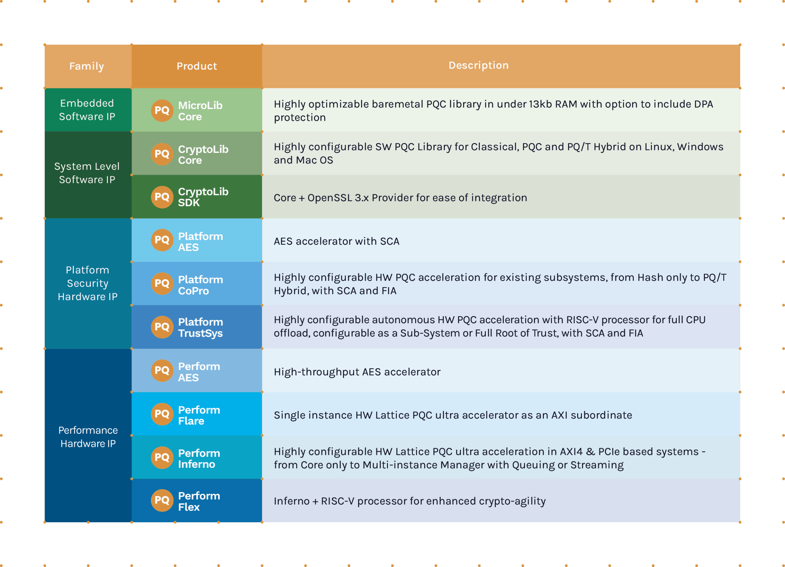 Engineered for cryptographic implementation and agility, PQPlatform-TrustSys provides a complete, PQC-focused, Root-of-Trust security solution. With industry-leading, NIST-standardized post-quantum cryptography support (ML-KEM, ML-DSA), plus traditional ECC and RSA cryptographic algorithms, as well as fault-tolerance and side-channel countermeasures, PQPlatform-TrustSys is an ultra-secure solution for systems – before, during, and beyond the transition to PQC.